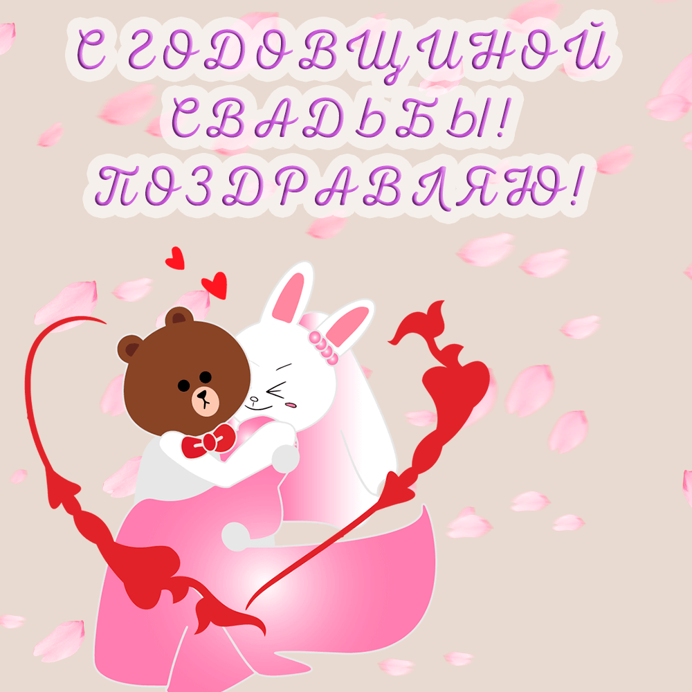 Открытка с милыми нарисованными мишками на годовщину свадьбы