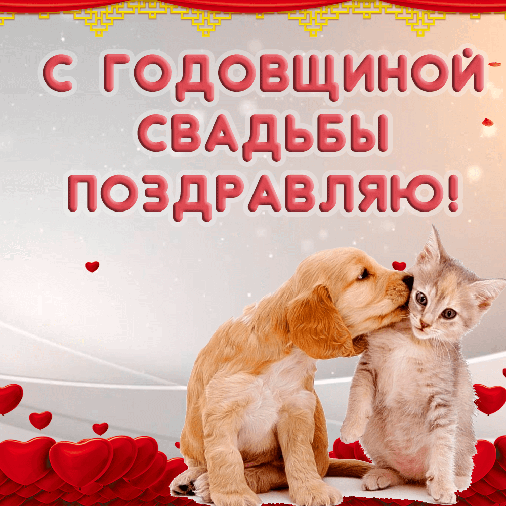 Прикольная открытка с собачкой и кошкой на годовщину свадьбы