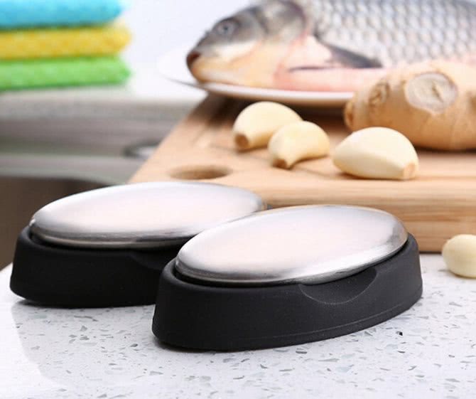 - Стальное мыло, которое убирает запахи, оно должно лежать на кухне в мыльнице, чтобы каждый мог помыть руки после чеснока, рыбы или других «ароматных» продуктов.