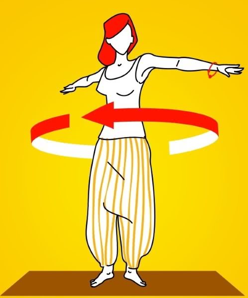 Продолжайте повороты корпусом до тех пор, пока не почувствуете легкое головокружение. Изначально будет достаточно сделать несколько оборотов, а уже позже увеличивать их количество.