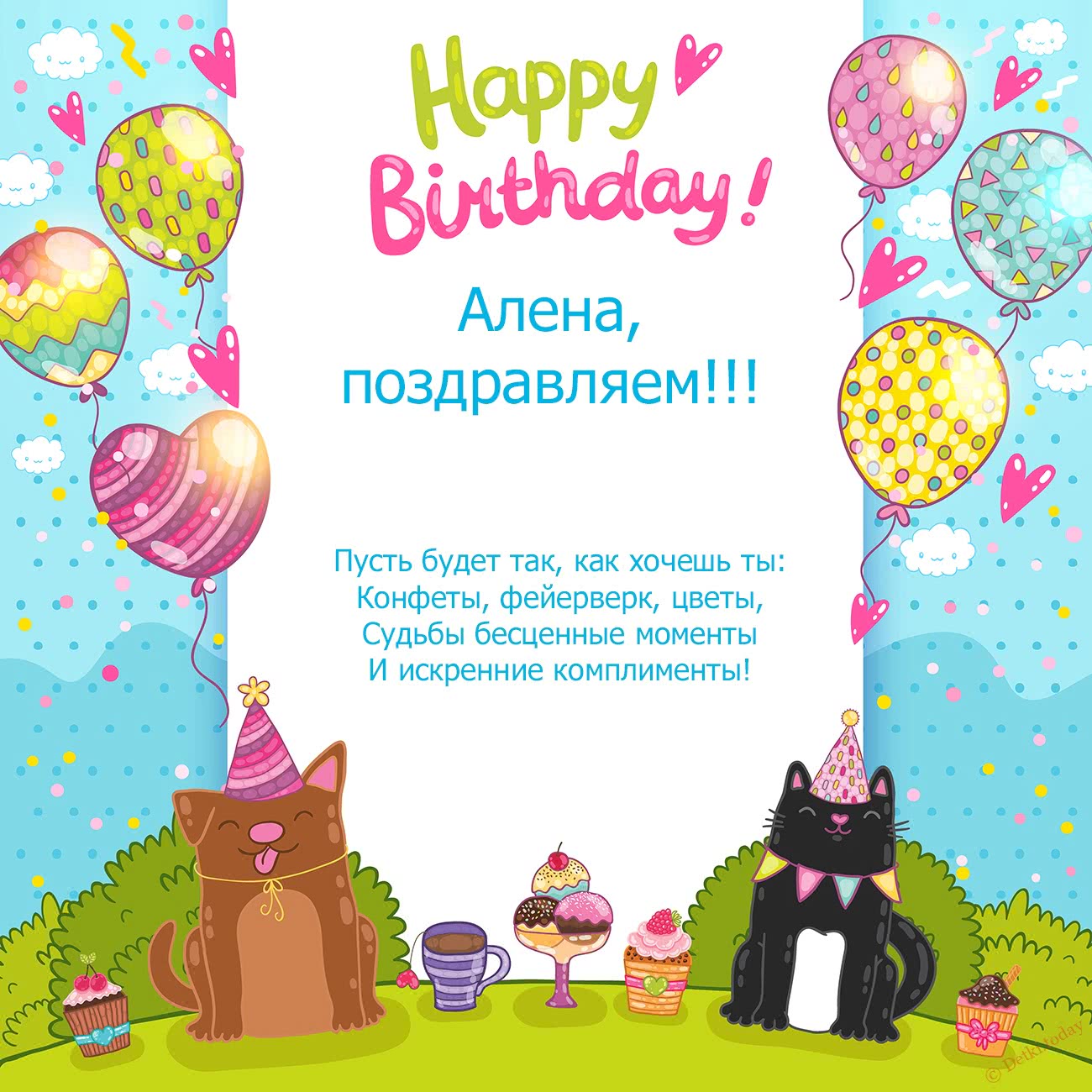 «С днём рождения Алёна! Будь как ангел невесома… Настроение улучшай, бед и горестей не знай!»