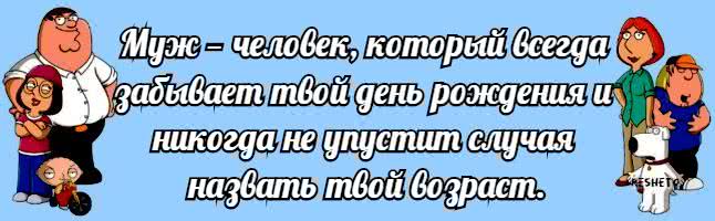 - Муж — человек, который всегда забывает твой день рождения и никогда не упустит случая назвать твой возраст.