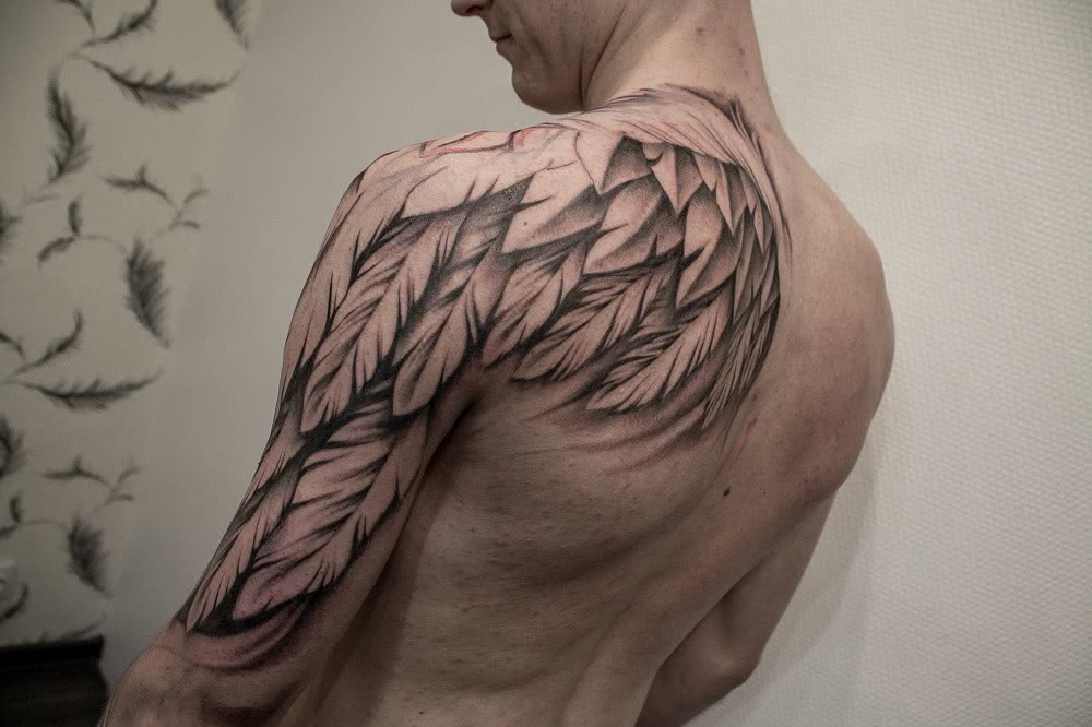 Татуировки с всевозможными изображениями крыльев отличаются неким магнетизмом и всегда привлекают внимание, особенно если наносятся на открытые участки тела. Этот неоднозначный рисунок будоражит фантазию, завораживает и смотрится очень эффектно