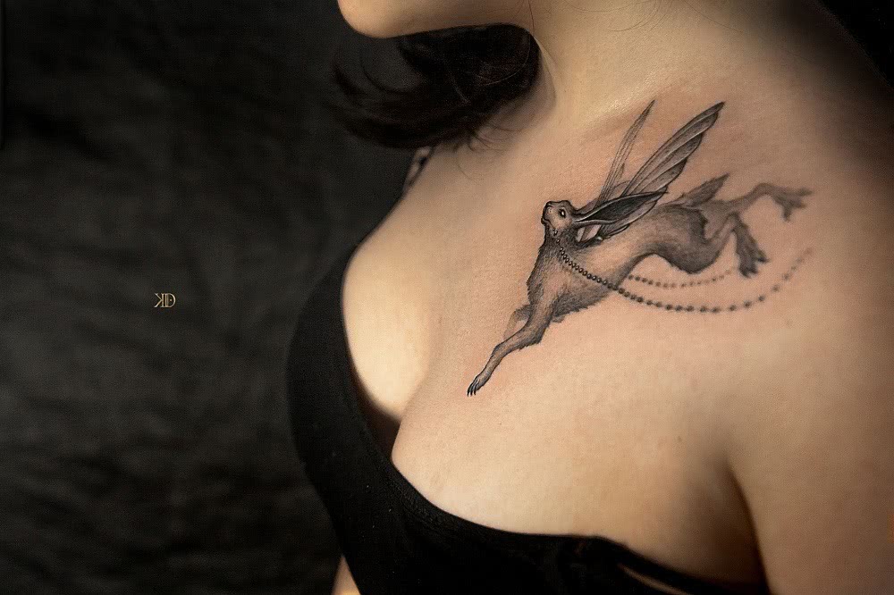 Вариант с пушистыми крылышками небольшого размера является показателем честности и в некой степени наивности. Татуировка, выполненная в стиле минимализм, свойственна для обладательниц острого ума и высокой самооценки. Таким особам нет необходимости демонстрировать свои таланты при помощи броских и объёмных тату. Миниатюрные татуировки лишь подчёркивают многогранность натуры. Популярные места нанесения тату крылья среди барышень – это лопатки, шея, щиколотка и область запястья.