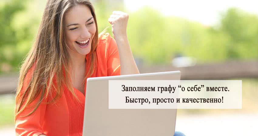 Примеры того, что можно написать о себе в анкете знакомств девушке: