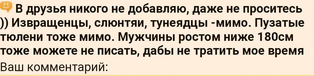 Не лишней будет информация о весе, росте, внешности, чтобы сразу отсеять мужчин с иными вкусами