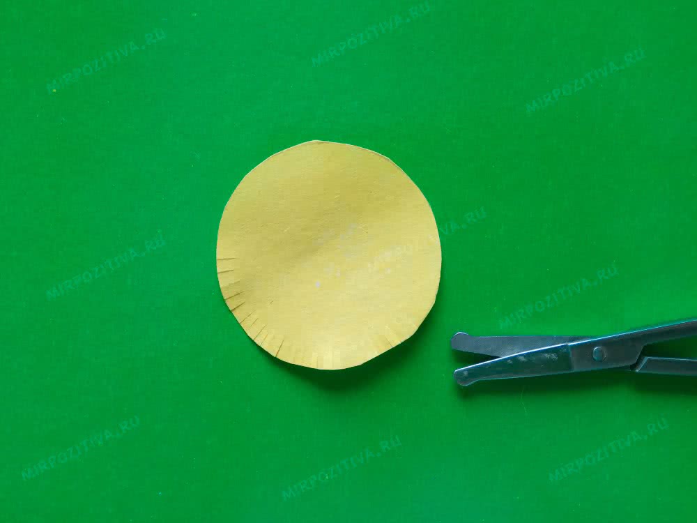 - Края круга нужно сделать пушистыми. Для этого сделайте по краям мелкие надрезы;