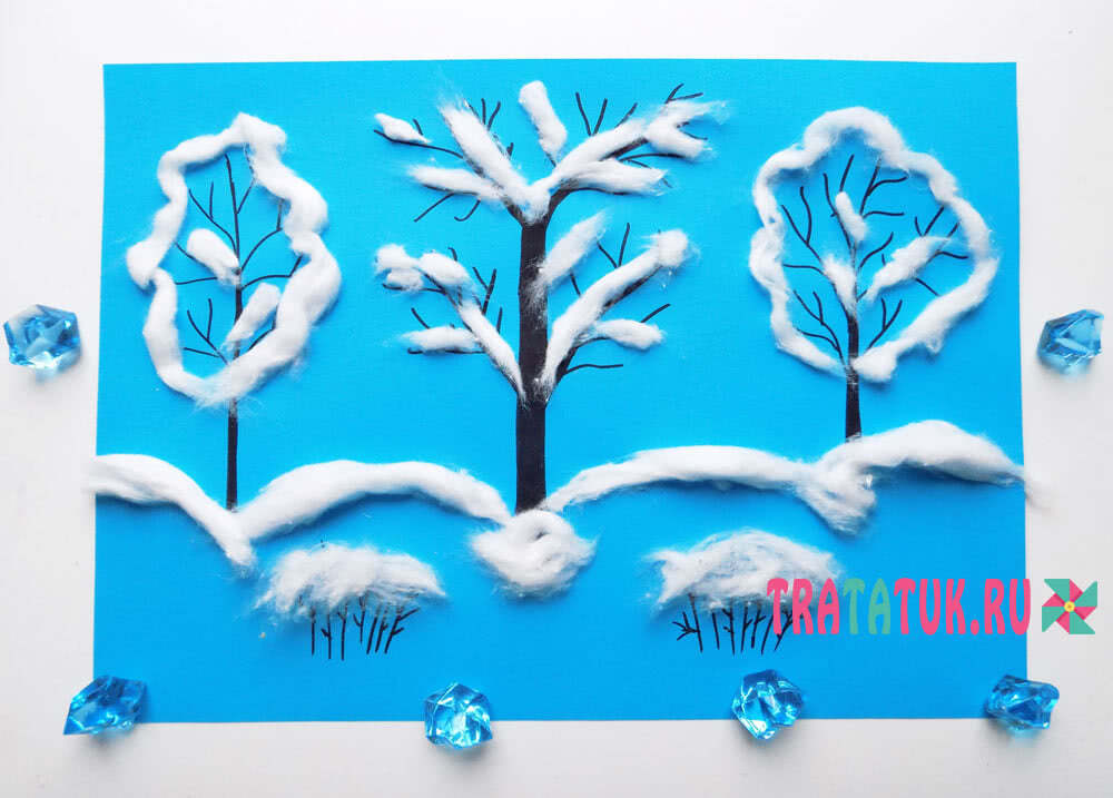Подробнее: зимняя аппликация из ваты «деревья в снегу»
