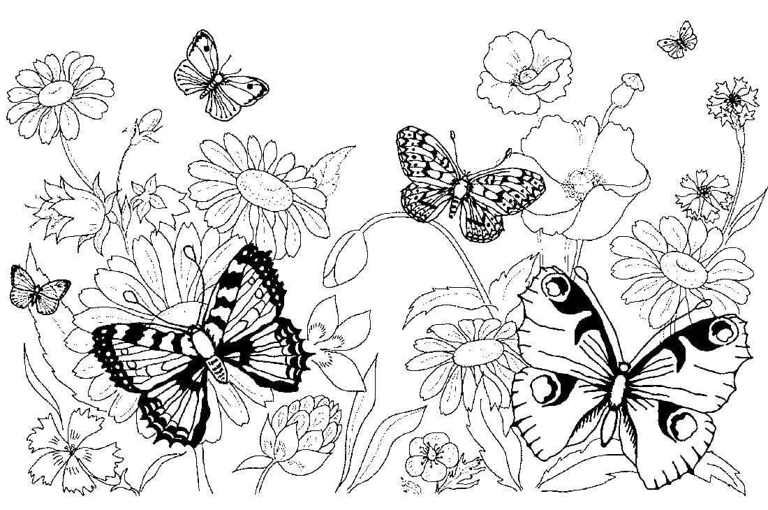 Раскраски бабочки и цветы тесно связаны, ведь питаются эти насекомые именно цветочным нектаром, потому в коллекции вы встретите картинки с бабочками, порхающими или сидящими на цветках.