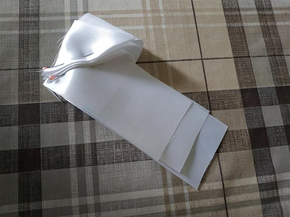 - Горизонтальную часть ленты сложить пополам заворачивая на себя. Проутюжить.