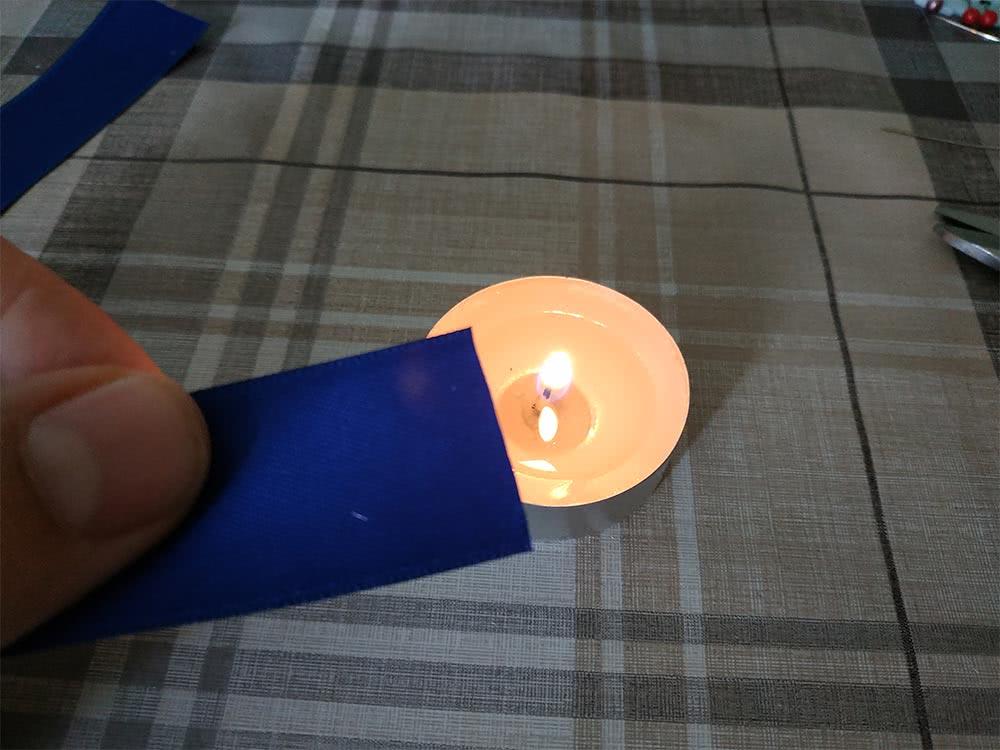 Теперь займёмся цветной (в нашем случае – синей) лентой. Обрабатываем открытые срезы.