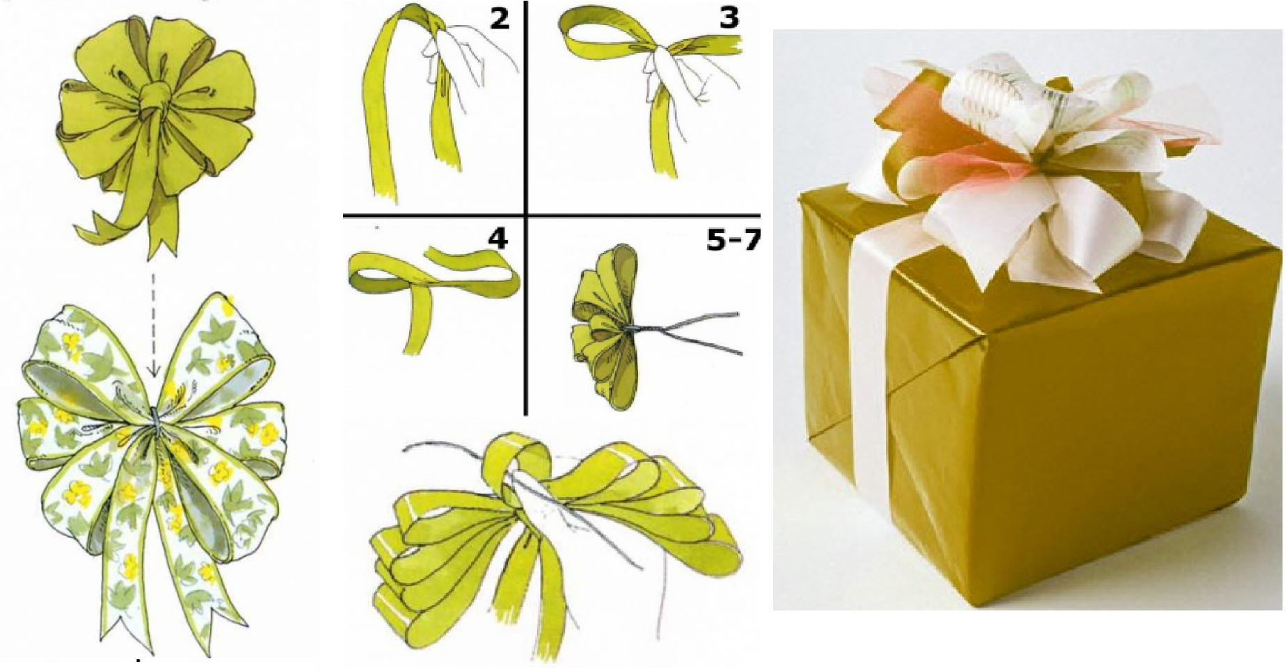 Обвязать подарки ленточкой своими руками сможет каждый. Для упаковки презентов используют следующие виды:
