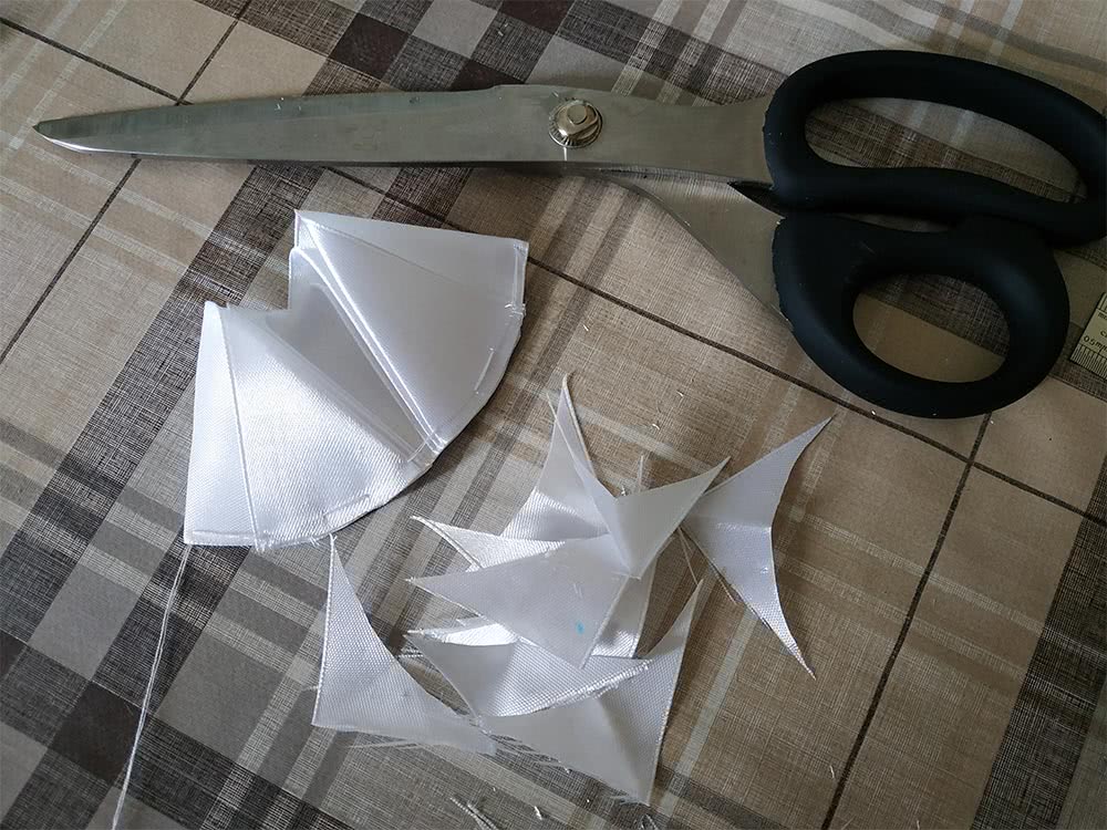 Отрезаем излишки вдоль стежочков, отступая от них на несколько миллиметров.