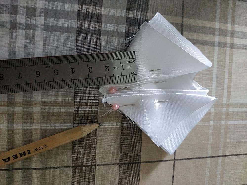 Теперь переходим непосредственно к созданию бантика – для этого мы будем складывать и фиксировать ленты.