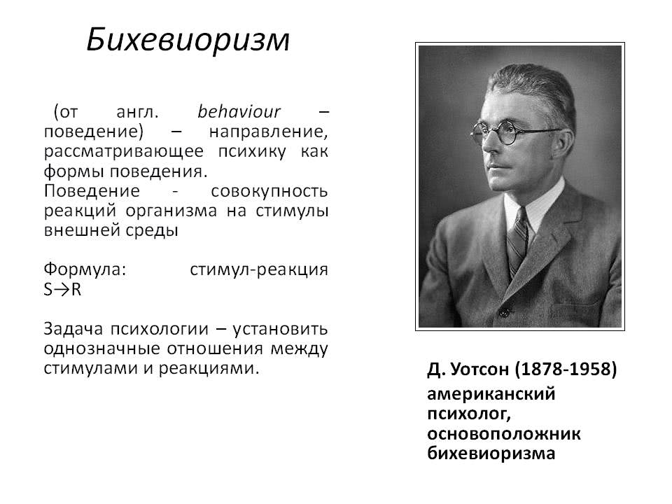 На этой почве зародился бихевиоризм, который однозначно отметал все субъективное и подвергал человека чисто математическому анализу. Основоположником этой теории стал американский психолог Джон Уотсон.