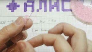 Берем бумагу и пишем имя, помните, что одна клетка – одна бисеринка. Как видно из схемы, ширина равняется 9 бисеринам, а само имя занимает 24 бисеринки – это приблизительно 5 см. Значит 1 см будет занимать 5 штук бисерин.