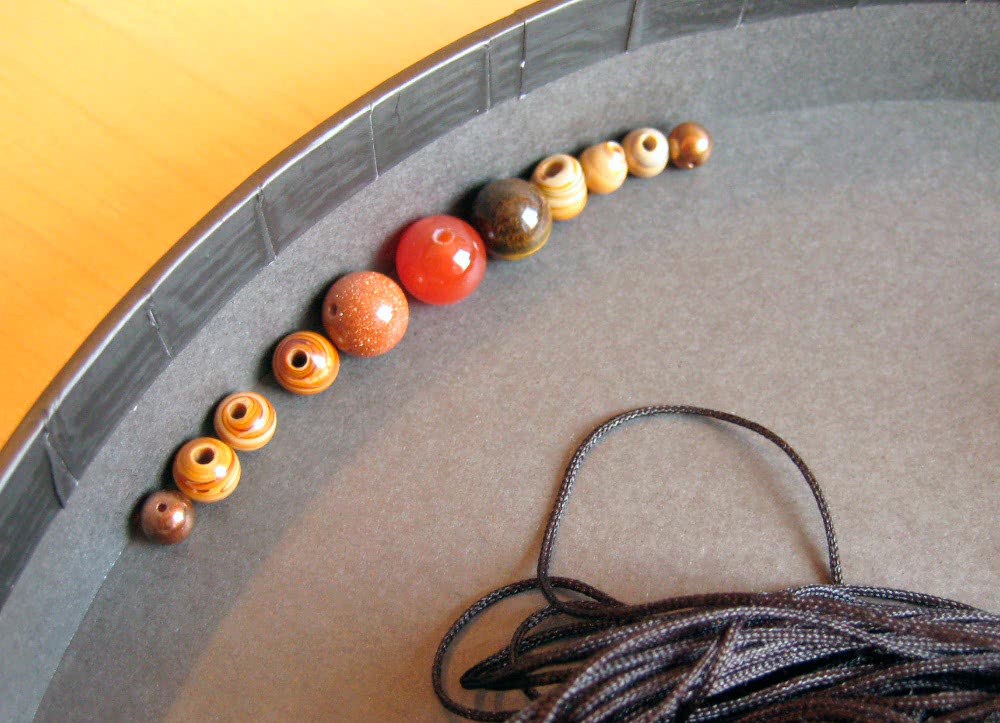 Украсьте ряд бусинами с обнимателями, которые частично закроют их с обеих сторон.