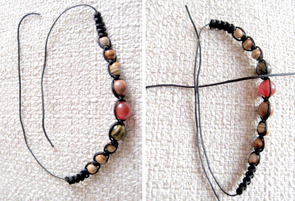Когда длина браслета с нанизанными на него бусинами станет достаточной, завяжите нить.