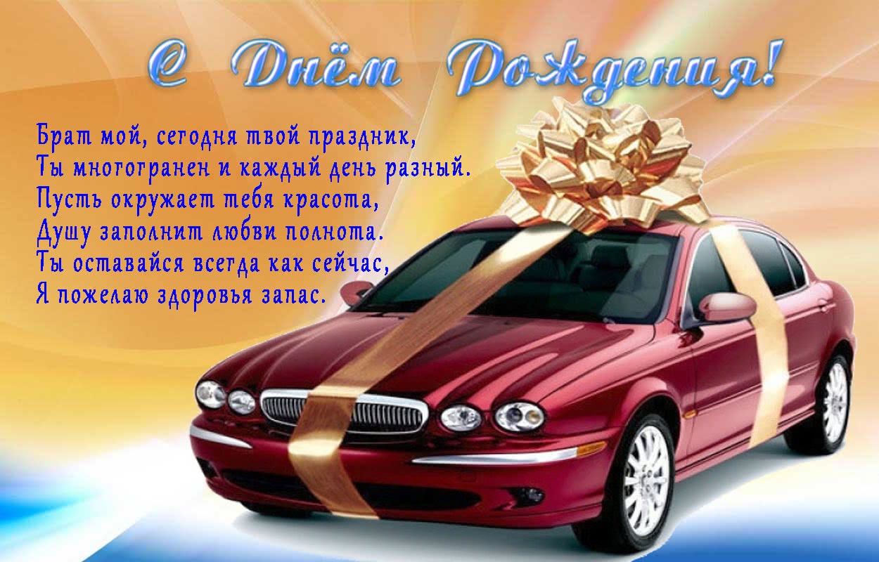 Поздравление брату, красивый автомобиль в подарочной ленте