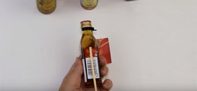 Установите алкоголь, нанеся капельку клея на дно бутылки.