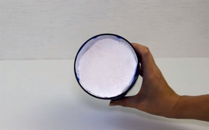 Из пенопласта вырежьте прямоугольник или круг под размер дна банки, нанесите на него клей, приклейте.