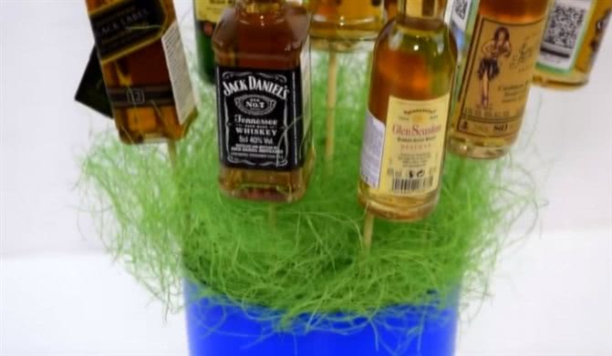 Букет из маленьких бутылочек алкоголя, фото с пояснением