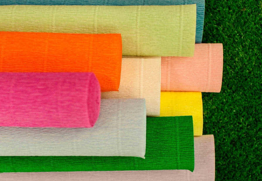 - Гофрированная бумага желтая, розовая, голубая, зеленая – по 0,5 метра;