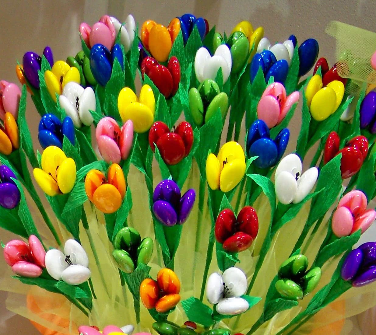 В зависимости от предполагаемого дизайна будущего подарка, необходимо подобрать правильную форму конфет. Для большинства цветов идеально подходят цилиндрическая и круглая формы.