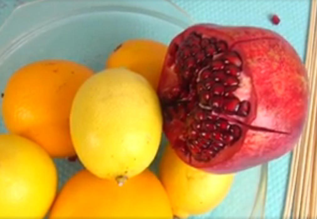 - Разрежьте лимон на 4 части и нанизайте на шпажки.