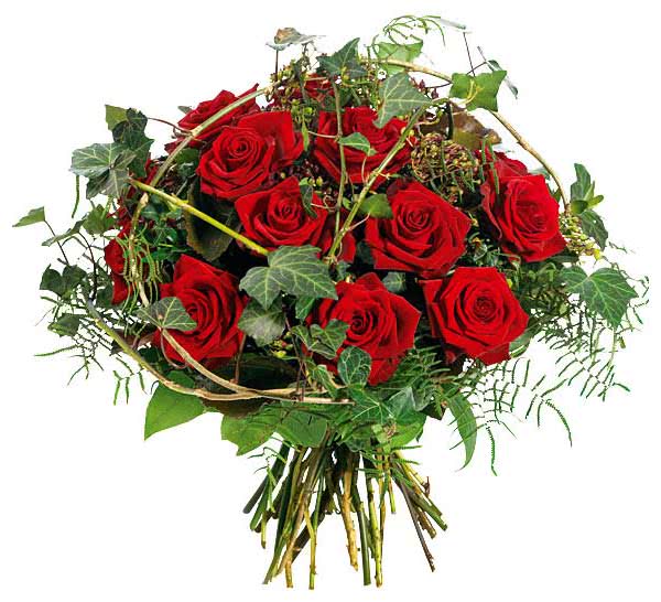 Красивые красные розы выделяются из ярко-зеленого фона этого красивого букета