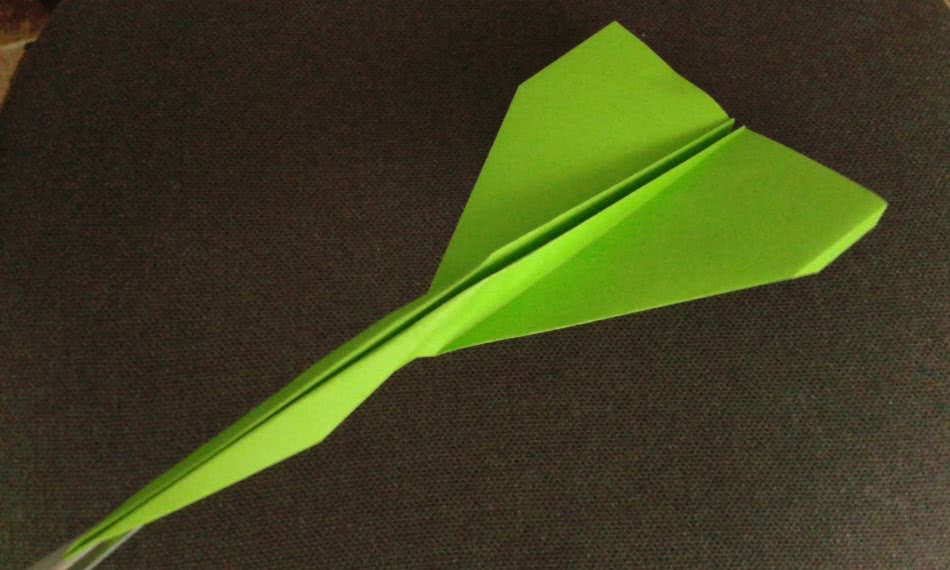 - Расправьте бумажный самолетик, задайте нужный угол крыла (90° и более) и запускайте его, держа поделку за фиксирующий уголок в середине игрушки.