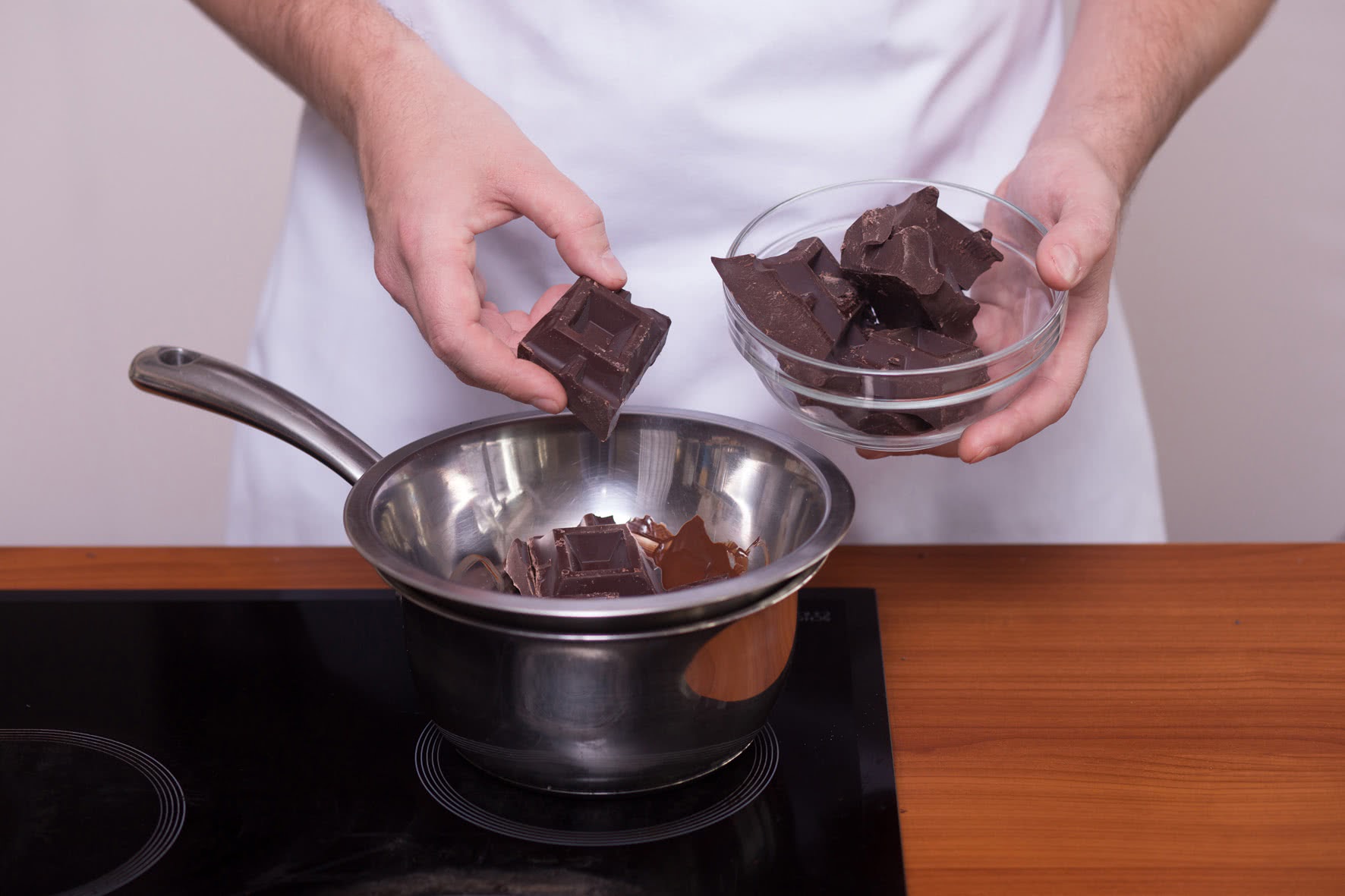 Если в смеси присутствует мед, темный шоколад смешивают с жидким медом, а белый с густым.