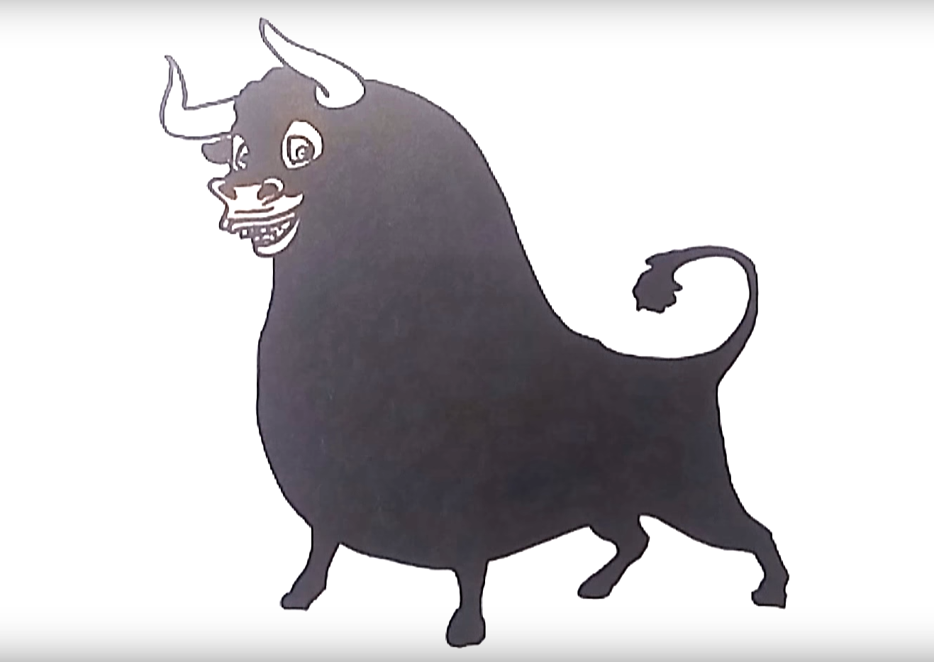 - Под головой быка рисуют изогнутую линию, напоминающую английскую букву U.