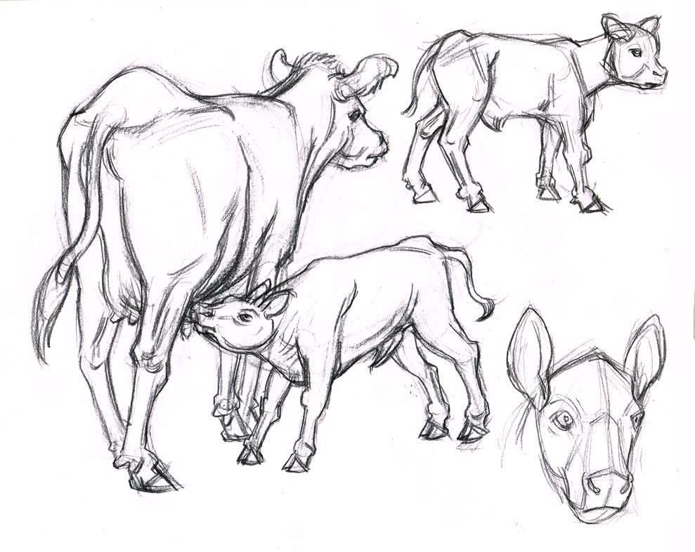- Еще совет: посмотрите видеоурок по рисованию животного, еще лучше наблюдать настоящего быка или корову в реальной жизни.