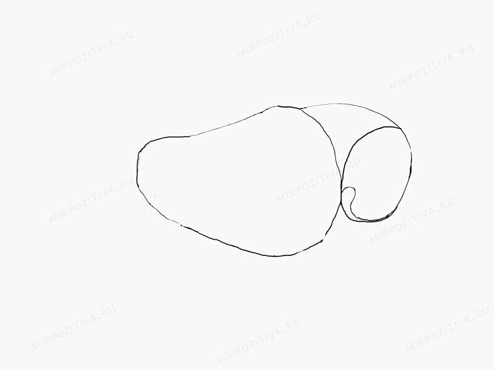 - Пририсуйте к туловищу ещё один овал. Это будет голова.