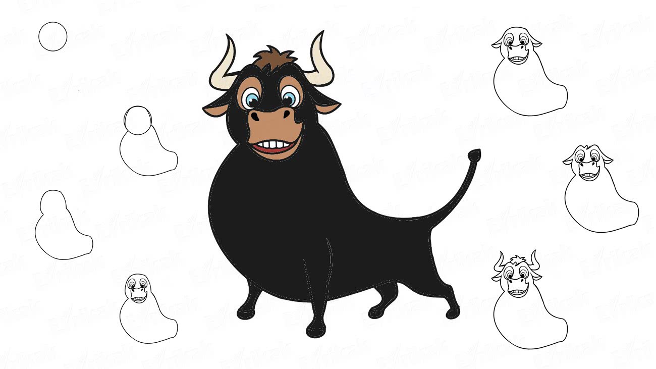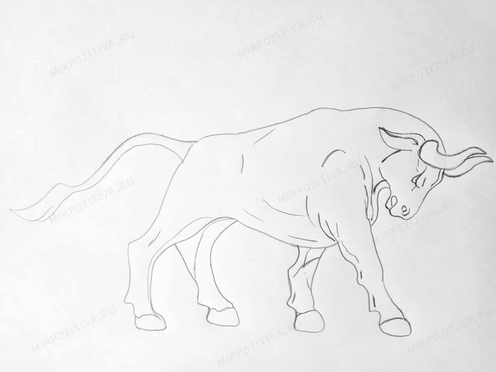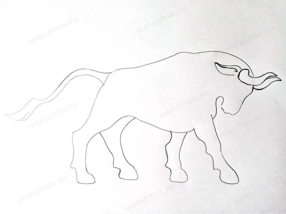 Нарисовать настоящего быка гораздо сложнее, но и эта задача вполне разрешима, если следовать поэтапной инструкции.