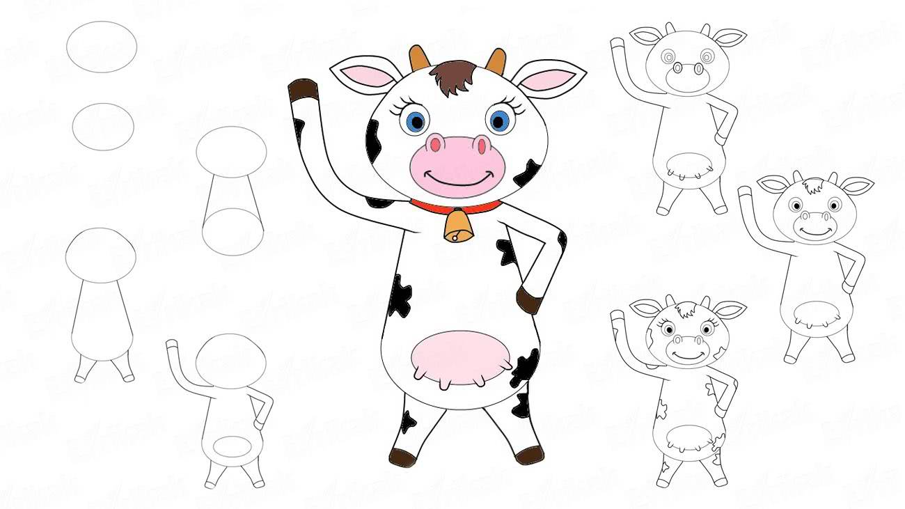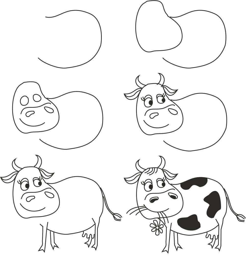 Как легко нарисовать корову пошаговая инструкция для детей: