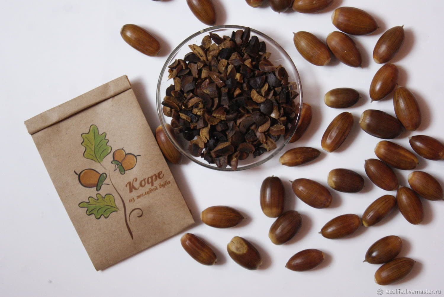 Несмотря на свое название кофейных зерен в нем нет, сырьем являются желуди. Желудевый кофе помогает справиться с отеками и спазмами, помогает активизировать организм с самого утра.