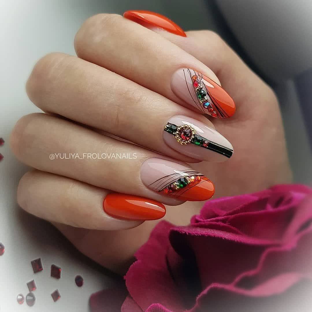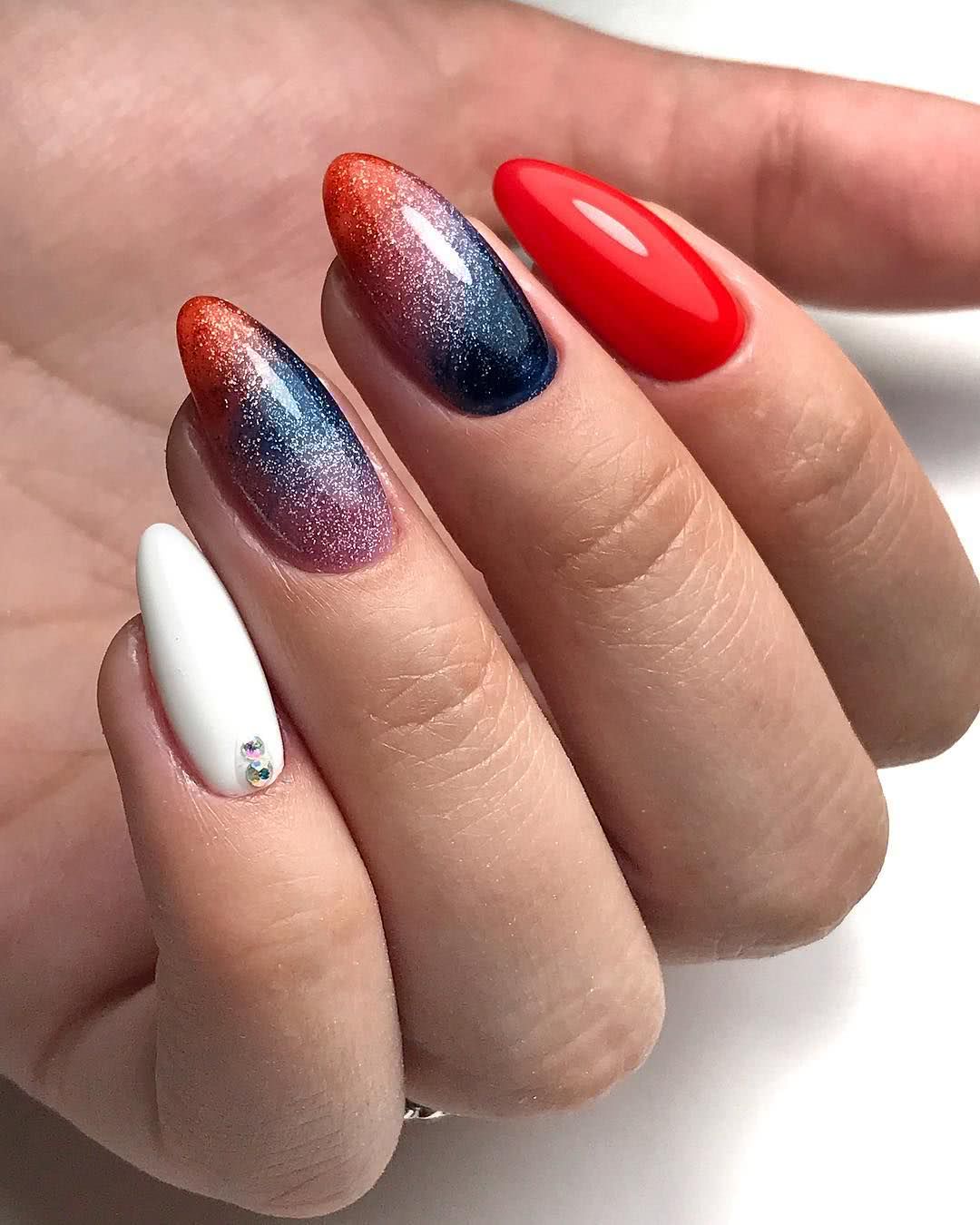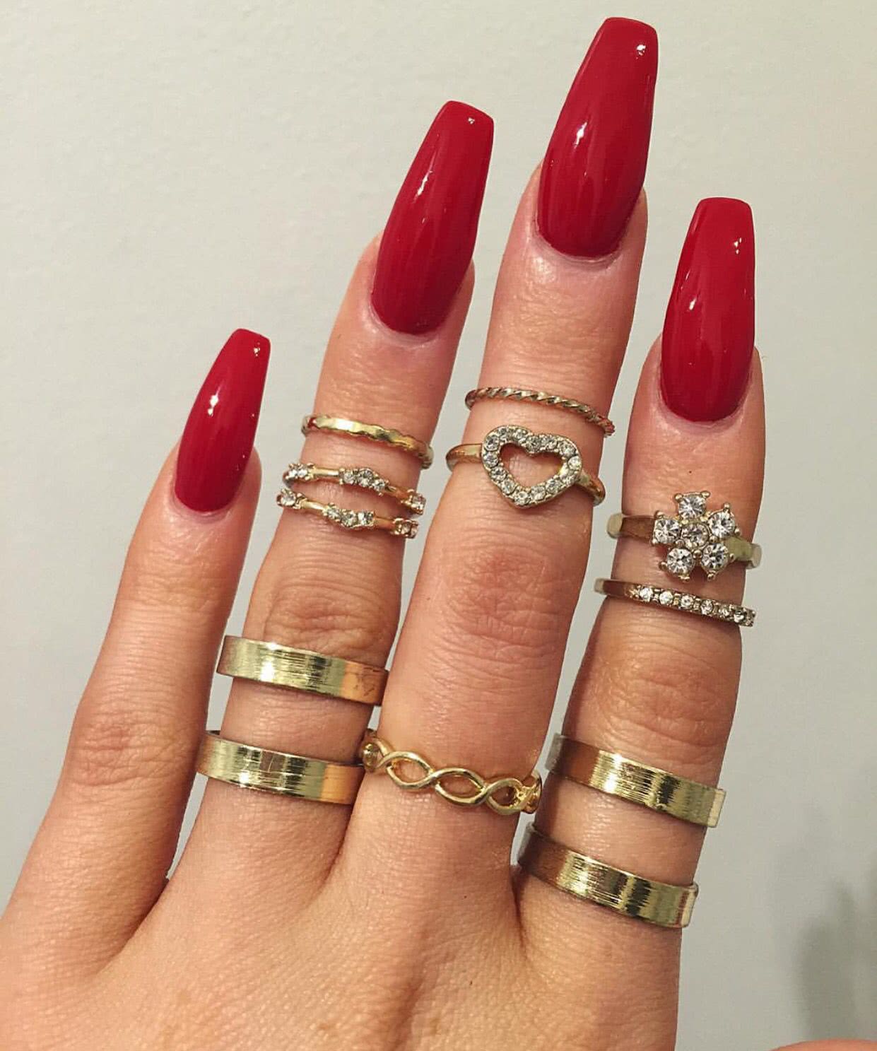 Почему вы должны выбирать между своими любимыми красными лаками для ногтей? Используйте весь спектр оттенков красного маникюра. От холодных красных ягод до горячих оранжево-красных оттенков и всего, что находится между ними. С этим дизайном ваши ногти будут выглядеть потрясающе. Поскольку все цвета принадлежат к одной палитре оттенков, вам не нужно беспокоится о их сочетании. Вместо этого все красные ногти будут гармонично смотреться вместе.