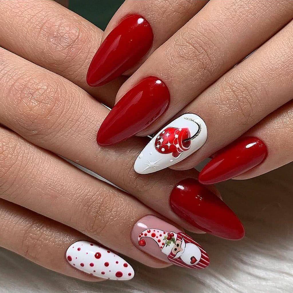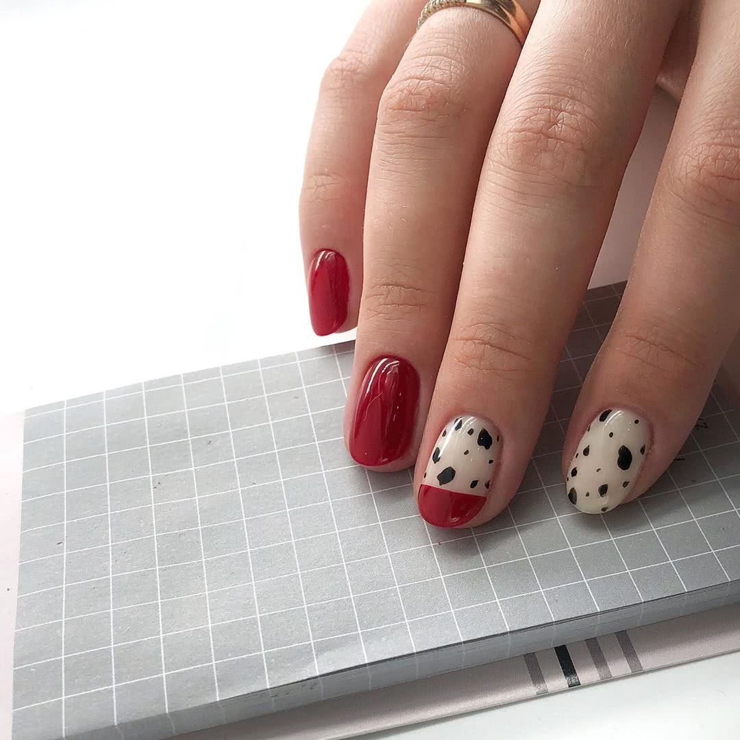 Охватите тенденцию красных точек с этим великолепным маникюром. Это тонкий и причудливый паттерн со своей особенностью. Плюс, он сочетает новый и современный взгляд на классический дизайн маникюра. Вы также можете попробовать узор в горошек. Для достижения наилучших результатов, покрасьте ваши красные точки поверх пастельного цвета или белой основы.