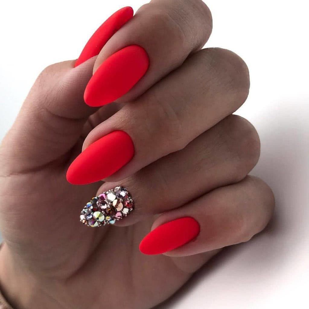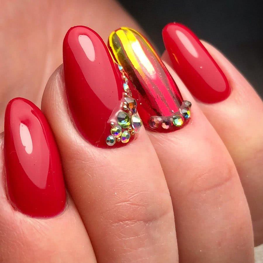 Отдельно стоит отметить декор, который используется для красного маникюра достаточно часто. Популярностью в 2020 году пользуются не только стразы и блестки, как это было ранее