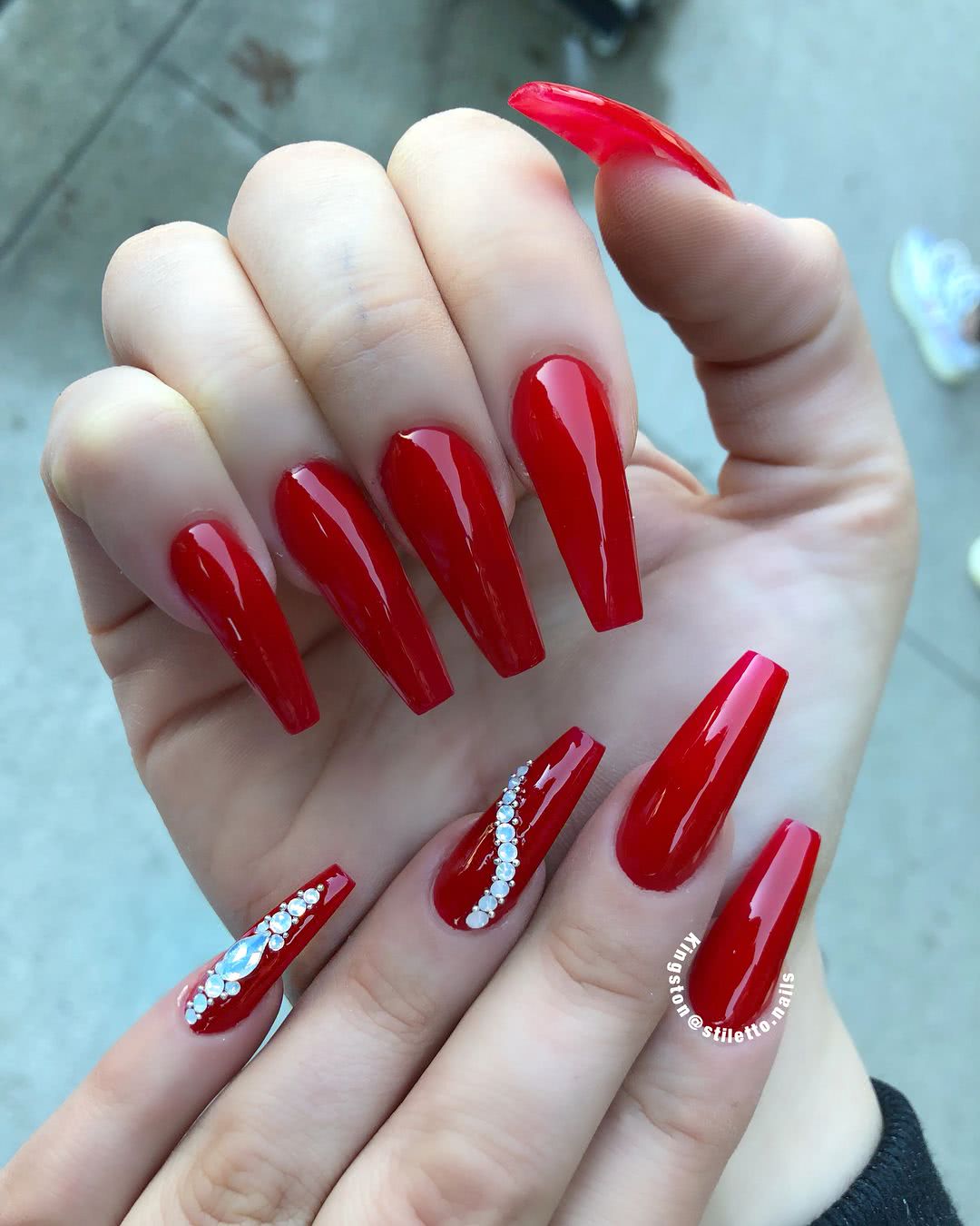 Наклеенные ногти обеспечат вам выдающийся маникюр за считанные минуты. Они также являются хорошим вариантом, если ваши натуральные ногти слишком слабы для акрилового покрытые или гель лака. В то время как существует огромное разнообразие доступных дизайнов и форм для наращивания ногтей, красный – это классика, которая будет сочетаться с любым нарядом.