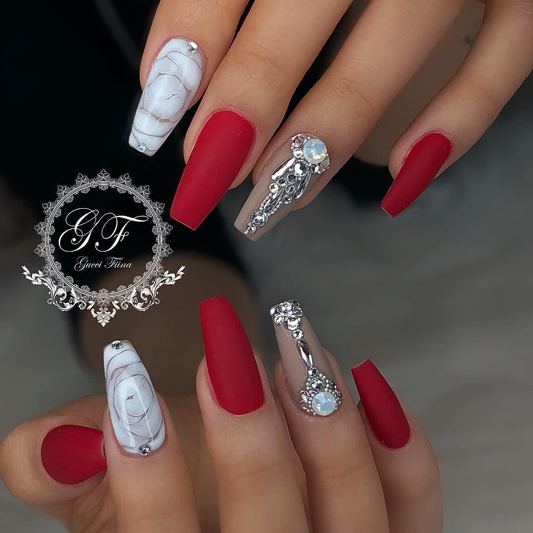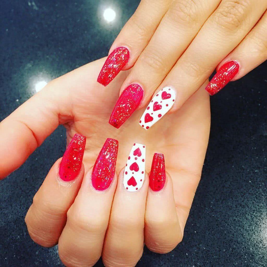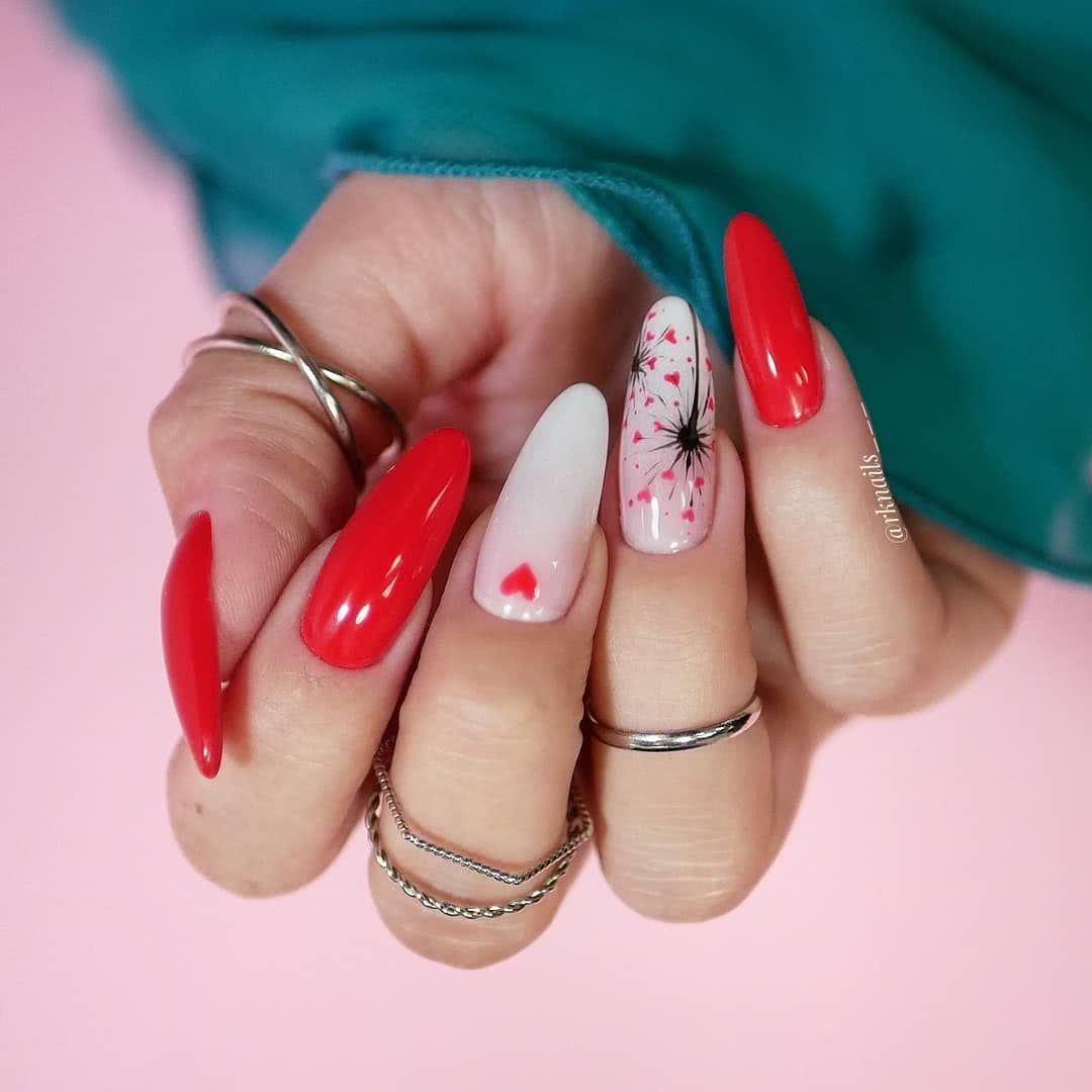 Покажите свою романтическую сторону с красными и белыми ногтями. Они идеально подходят для свидания или особого случая, лак для ногтей милый и сладкий. Выберите красный маникюр с белым сердечком или поменяйте цвет и выберите красный. Вы также можете использовать блеск в форме сердца или повторить рисунок сердца на каждом ногте. Есть большое разнообразие способов повторить этот дизайн.