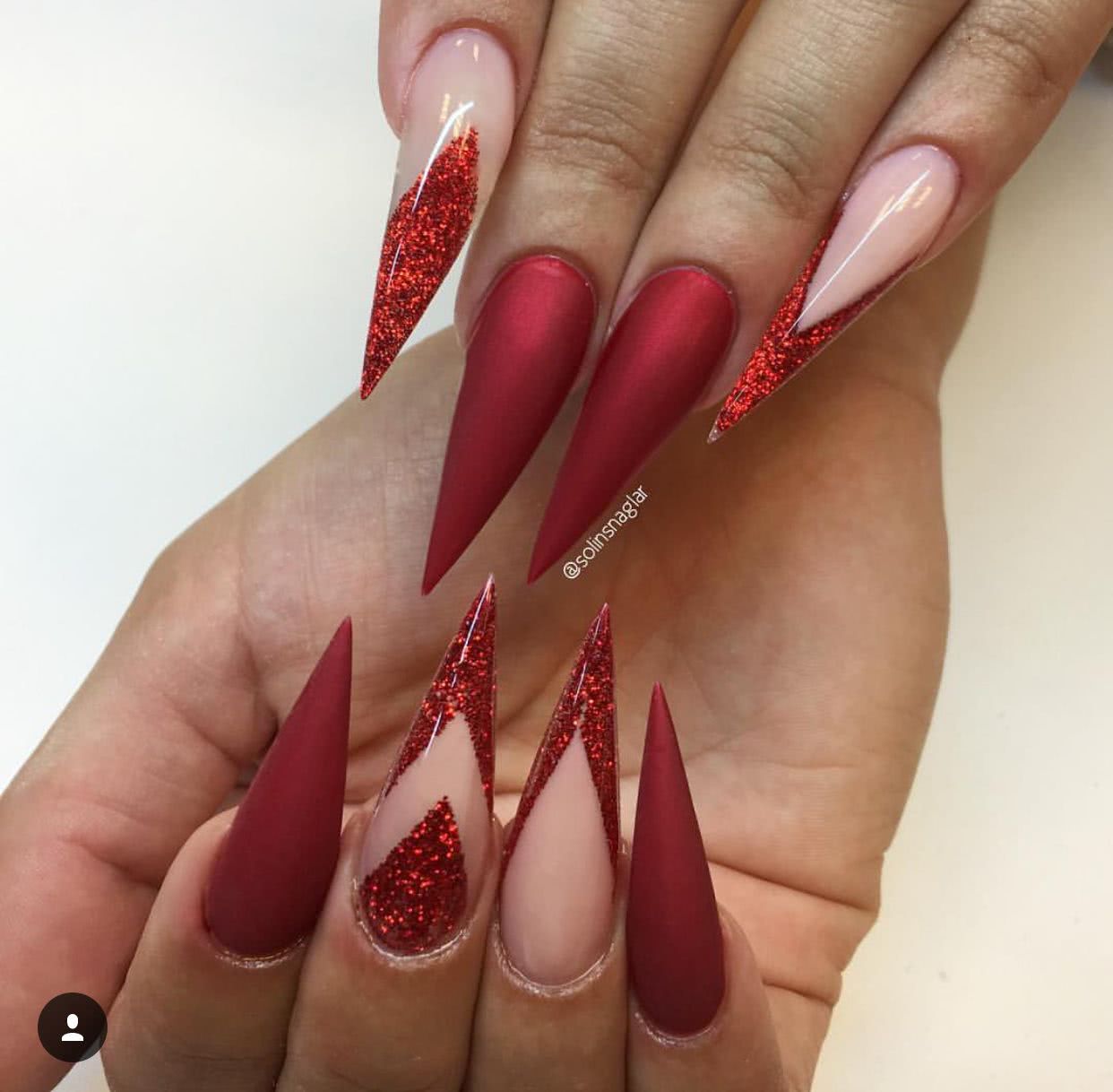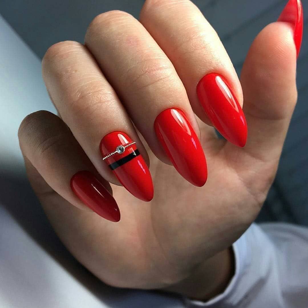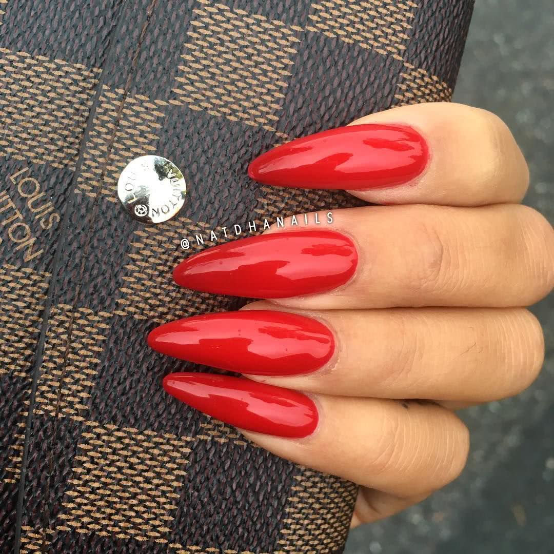 Острые красные ногти – сногсшибательный вариант для смелых барышень, любящих купаться во внимании.