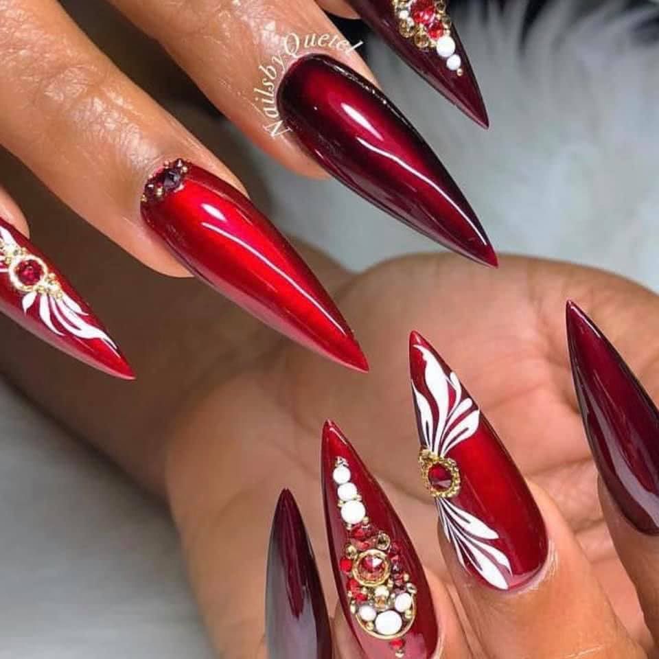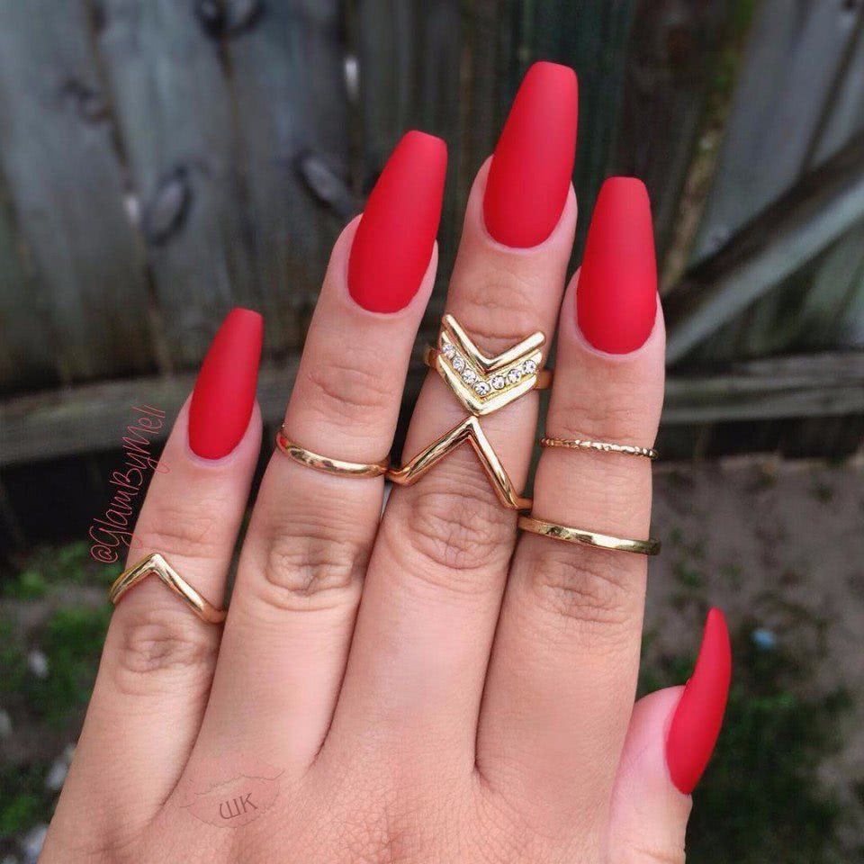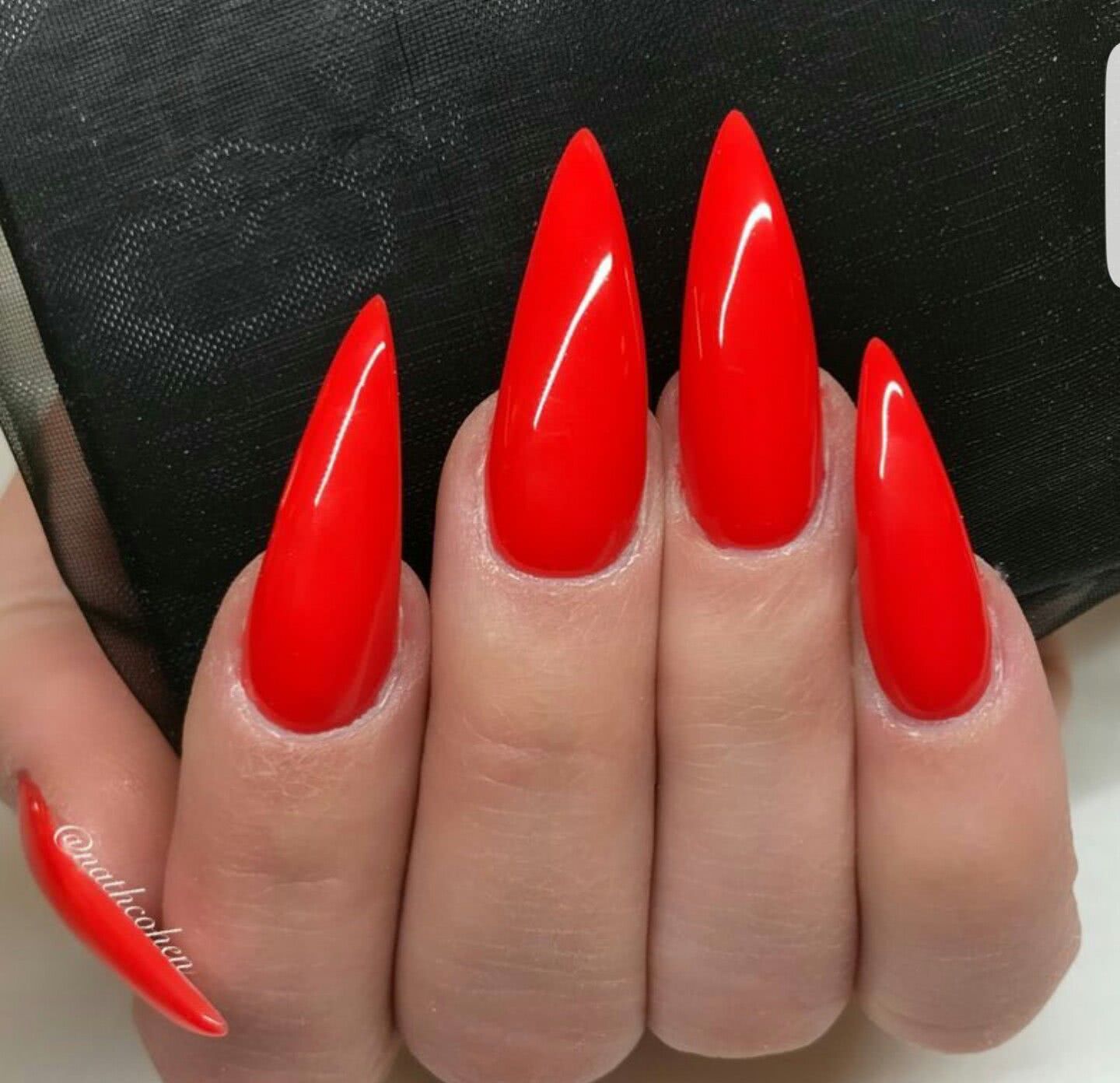 Острые красные ногти – сногсшибательный вариант для смелых барышень, любящих купаться во внимании.