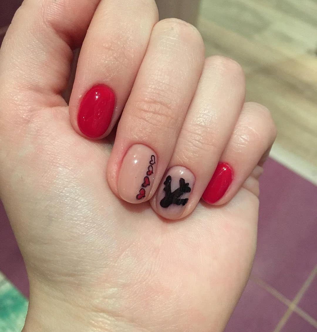Красный и розовый – классический цветной дуэт. Контраст между ярким, страстным и красивым розовым цветом создает неповторимый женский и романтический маникюр. Он отлично подойдет для особого случая, например, День Валентина или вашей годовщине, также вы можете сделать этот маникюр еще более милым добавив сердечки.