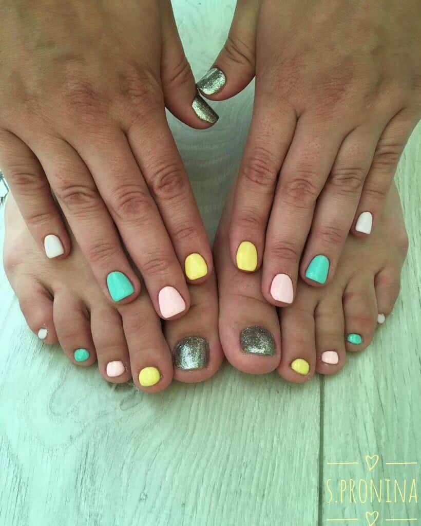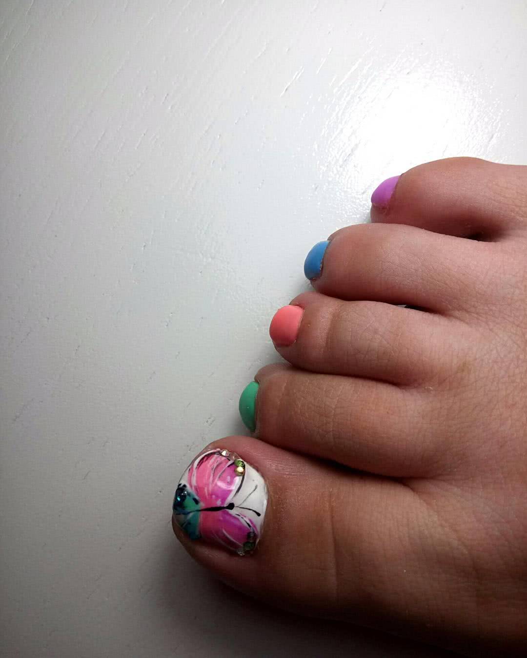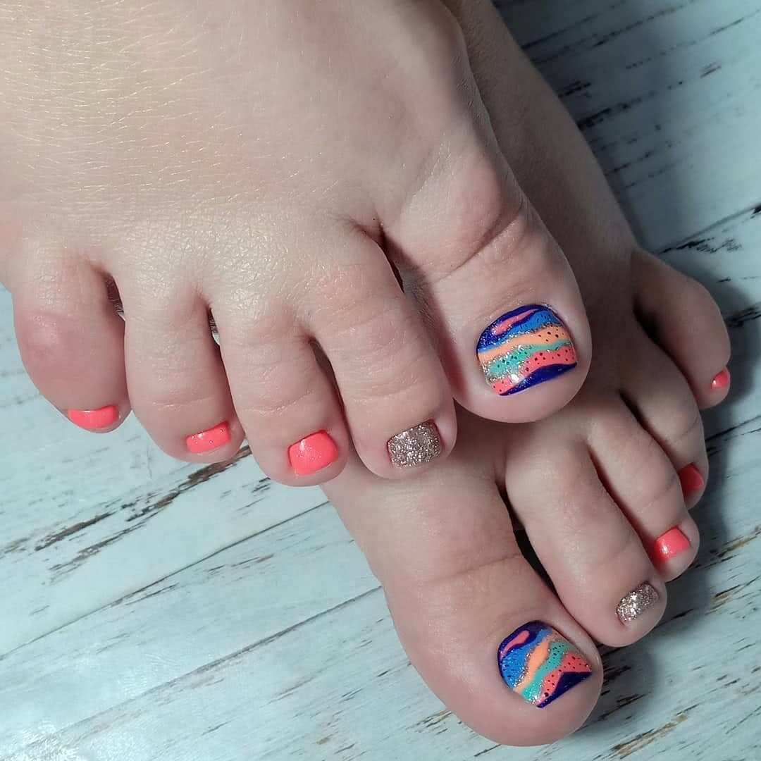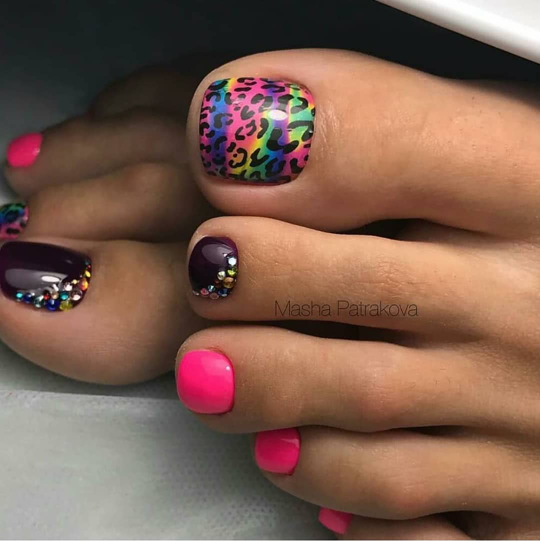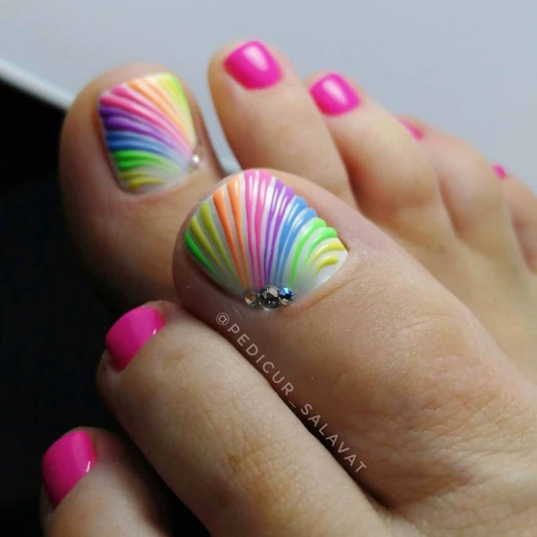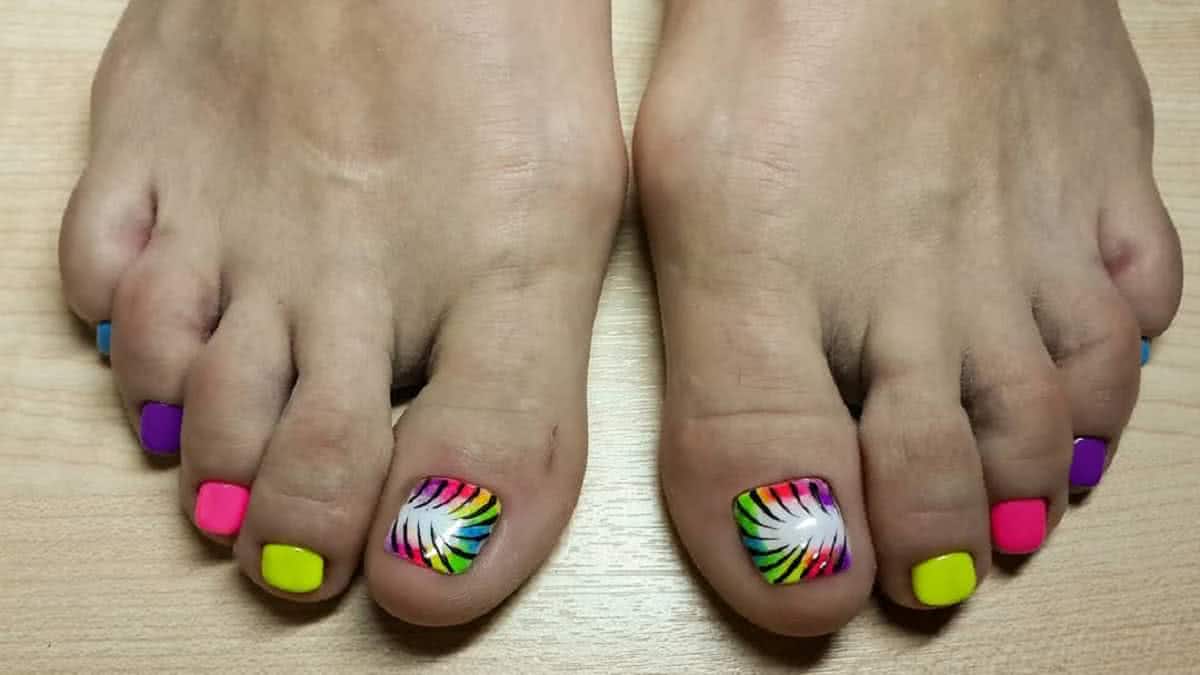 Разноцветные покрытия для педикюра подойдут к любому сезону и самому разному поводу. Такой дизайн пригодится не только во время отдыха или праздника, но и для поднятия настроения в домашней обстановке. Оформление в нескольких сочетающихся между собой оттенках сделает образ ярким, гармоничным и невероятно модным. Остаться незамеченной с данным педикюром будет просто невозможно.