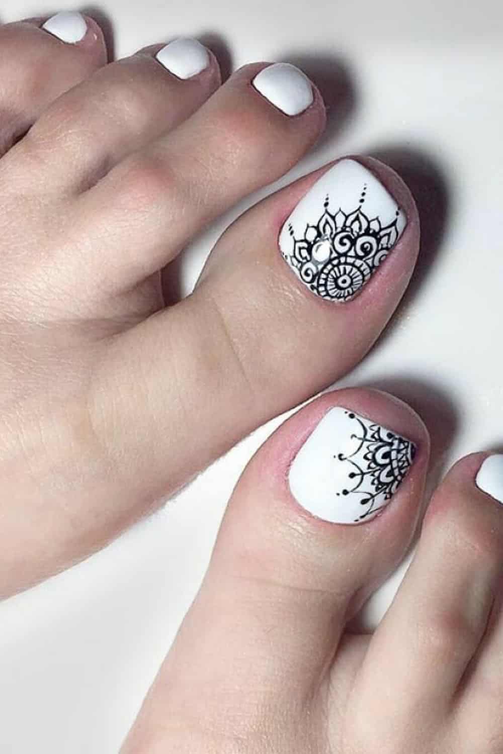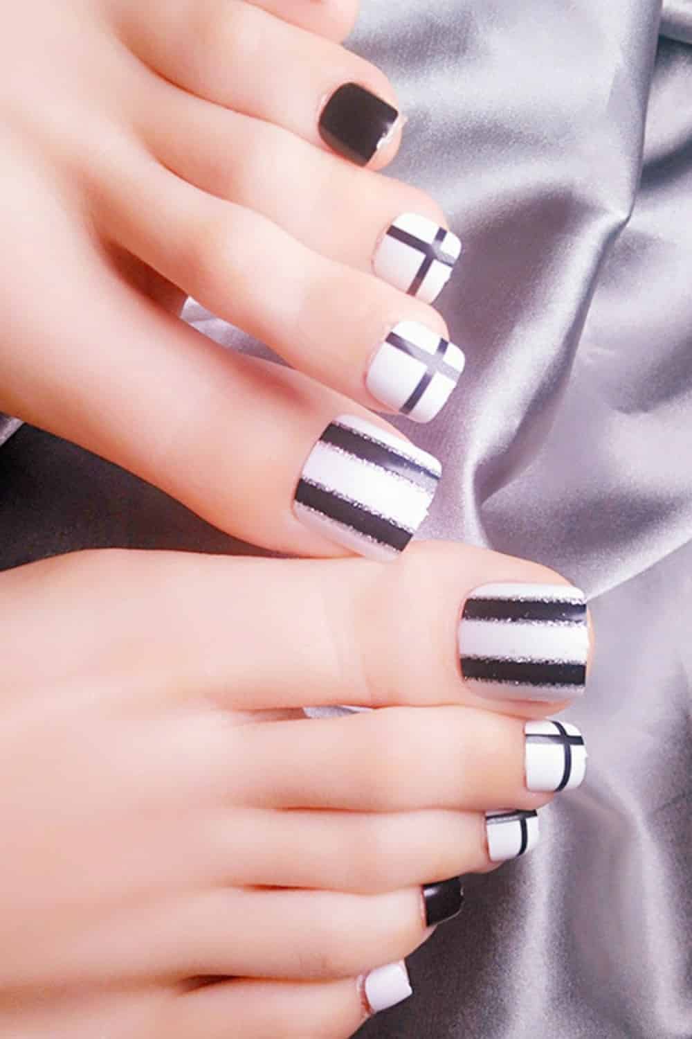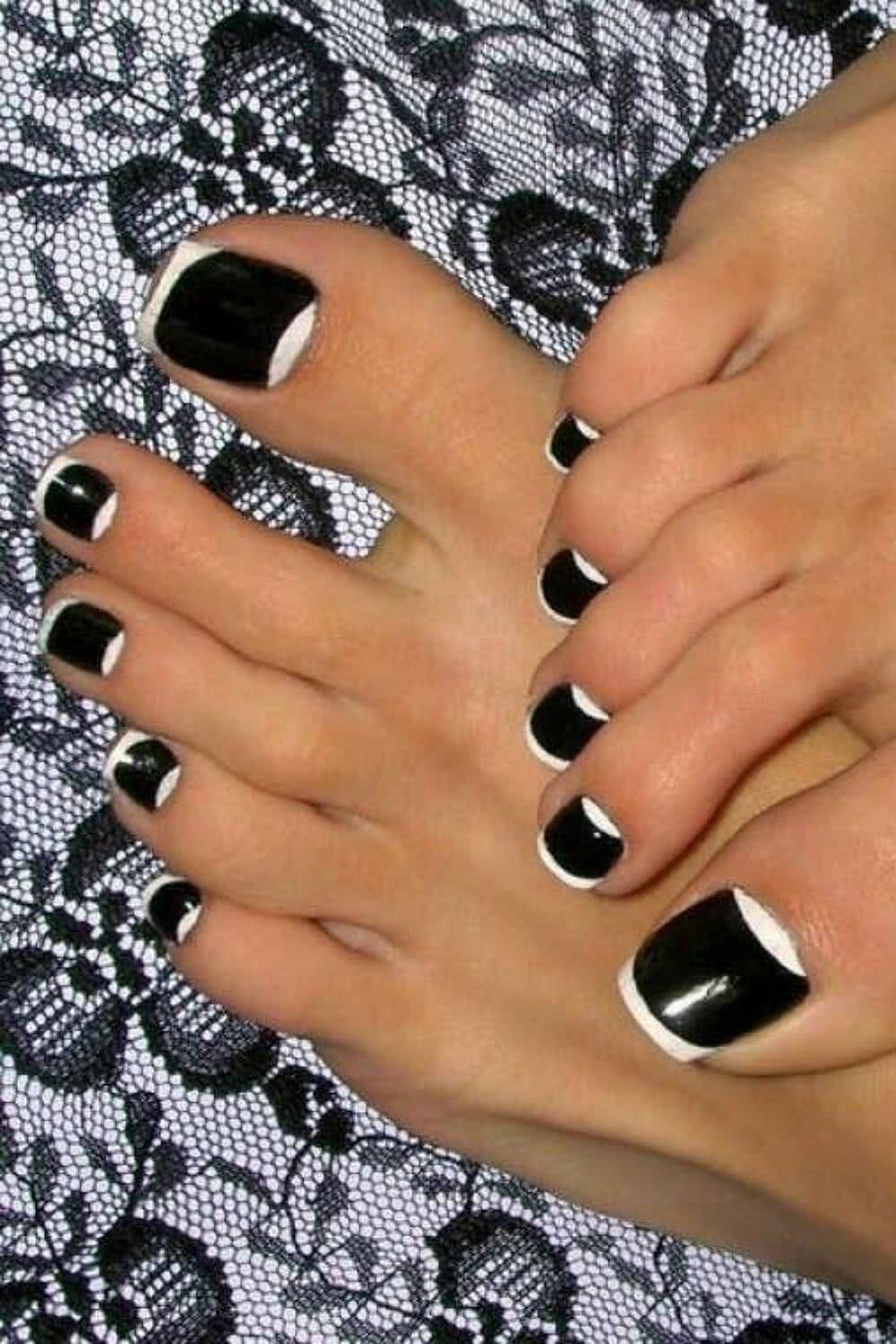 Оформление педикюра, в котором задействовано только два однотонных покрытия, может показаться достаточно простым и неинтересным. Однако существует огромное количество вариантов дизайна в черно-белой гамме, способные затмить разноцветный декор.