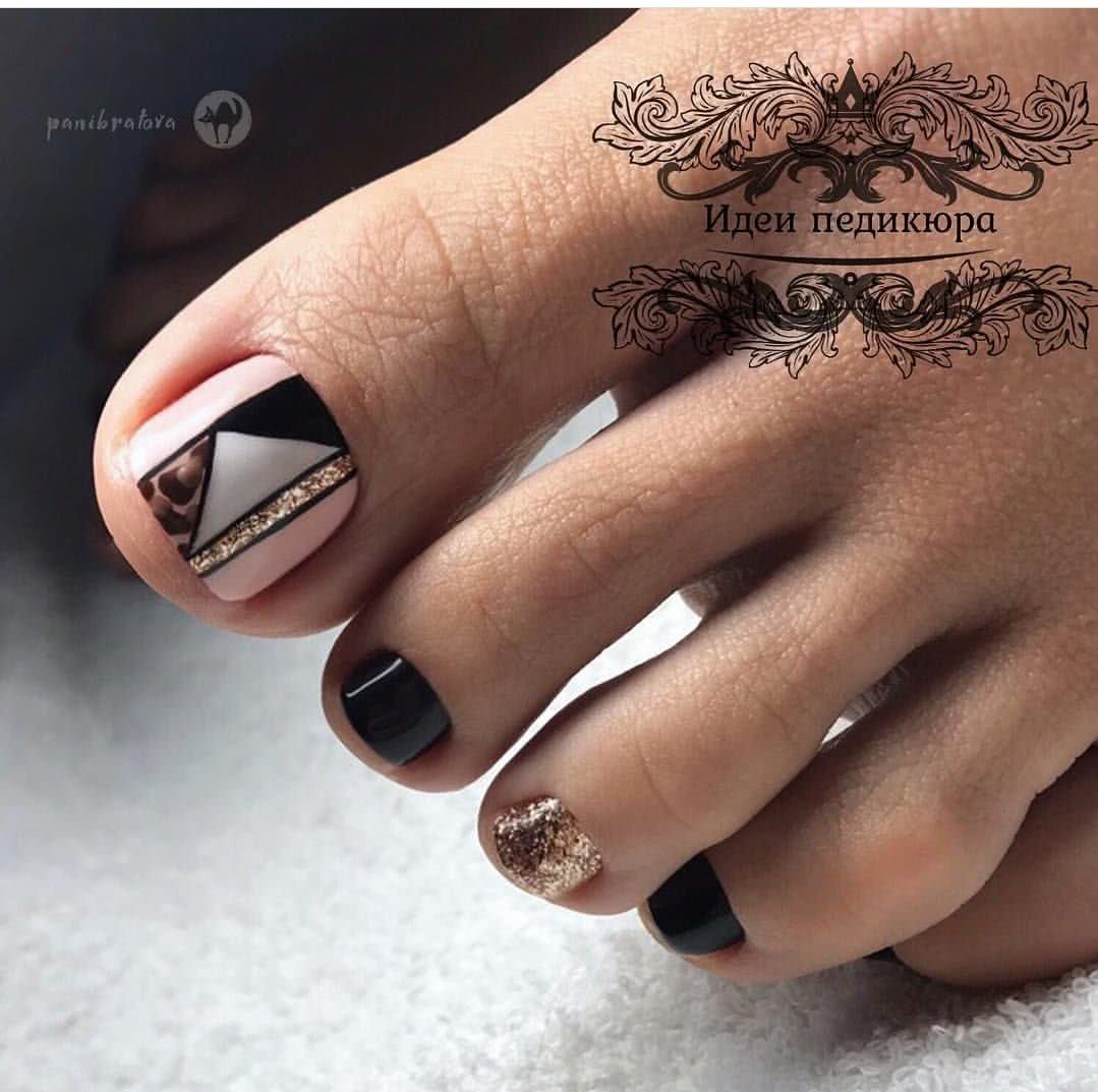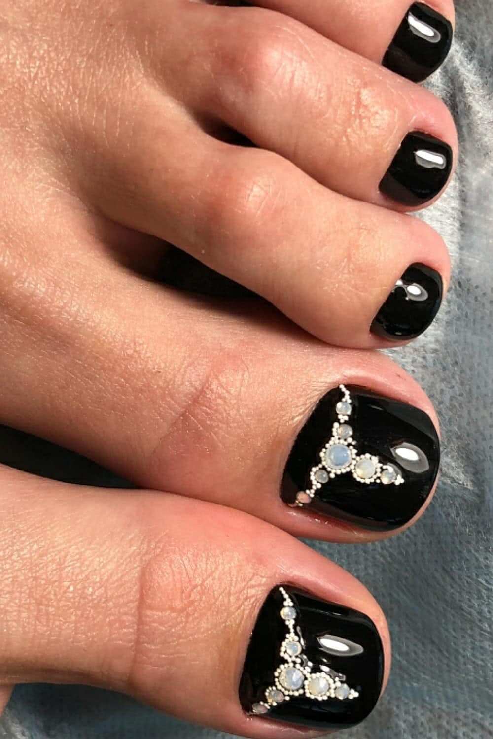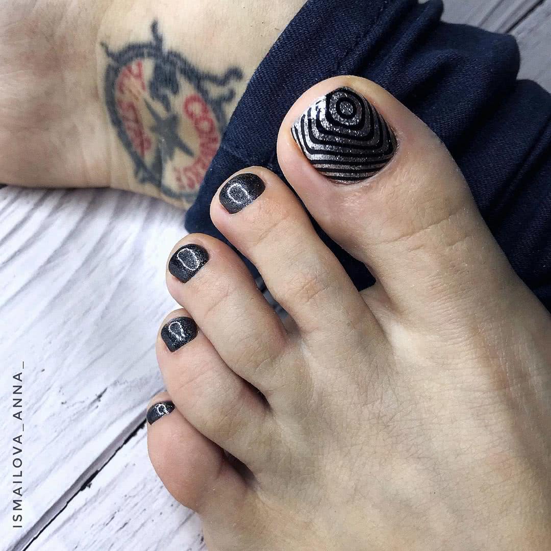 Дизайн и цветовые сочетания педикюра в черном цвете