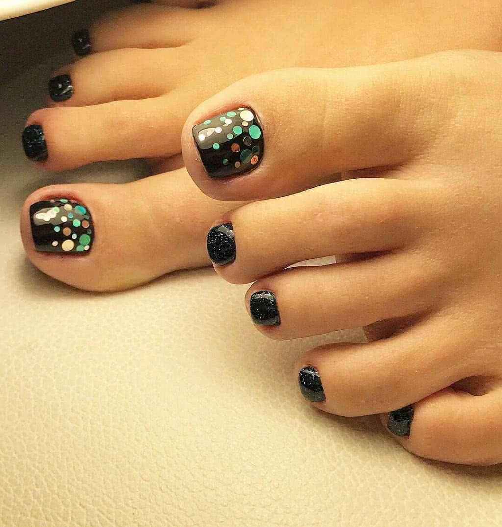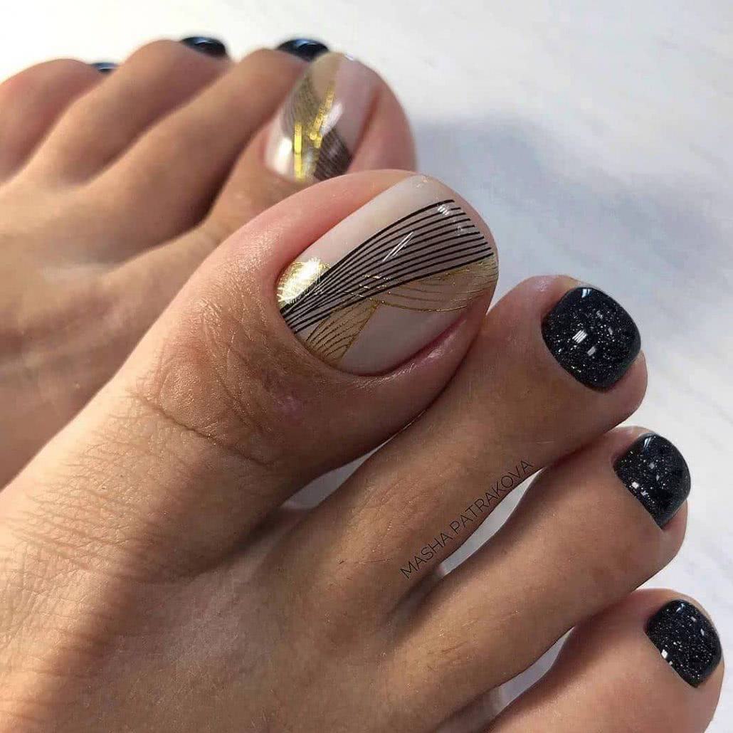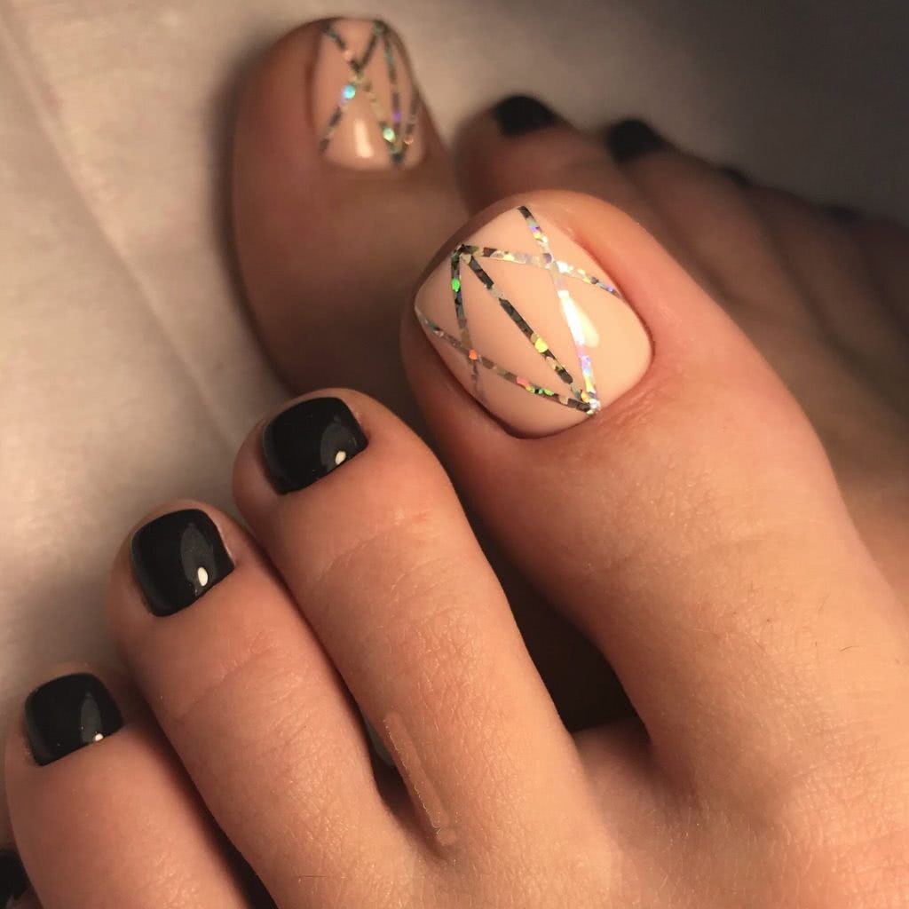 Дизайн и цветовые сочетания педикюра в черном цвете